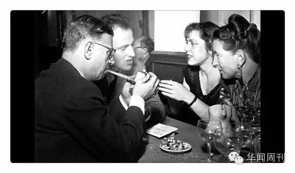 ▲萨特和波伏娃在巴黎酒馆与友人聚会