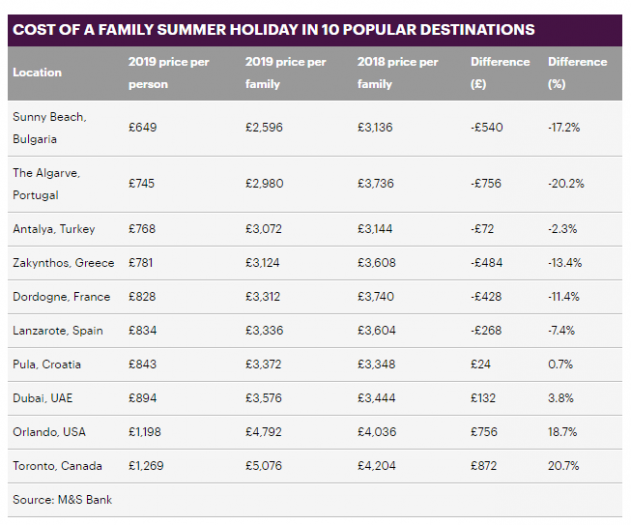 为此,M&S银行总结了汇率相对划算的十大目的地: