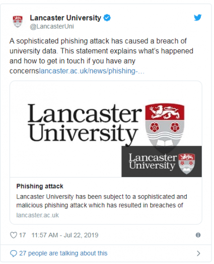 兰卡斯特大学的学生个人数据因“复杂且恶意”的网络钓鱼而被盗取。