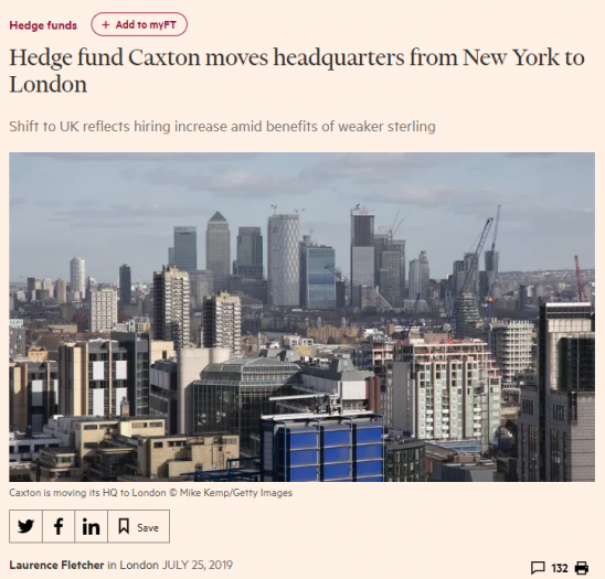 近日,美国对冲基金巨头Caxton却向投资者发布消息:要把总部从纽约搬来伦敦!这似乎给金融市场吃了一颗定心丸,美国巨头仍然对英国金融市场有信心。