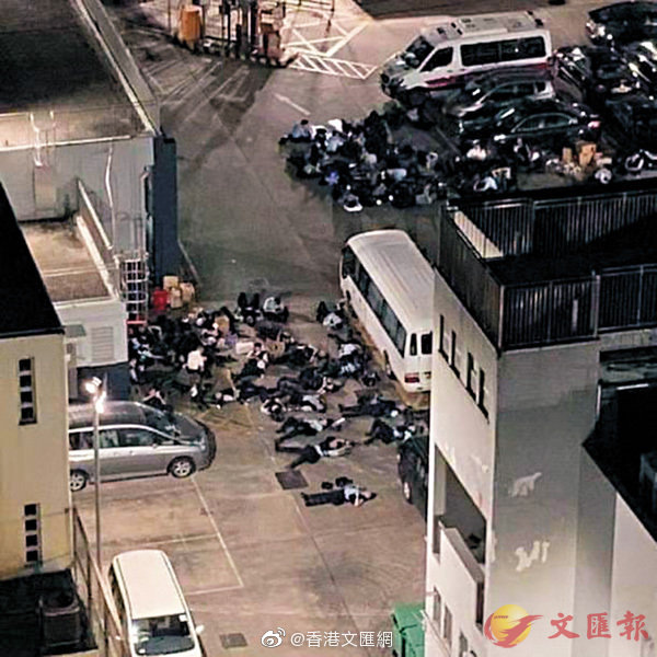 香港警察躺在地上休息 下文图片来源均为香港文汇网