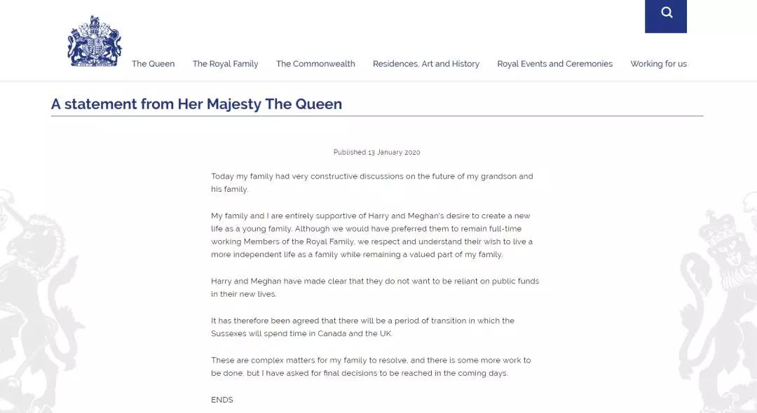 ——最后一句划了一个“最后期限”:未来几天内。这说明王室有清醒认识和紧迫感:这件事不能拖过月底,因为月底1月31日恰恰是英国“脱欧”的大限,不能让王室事务的影响叠加到“脱欧”上来。