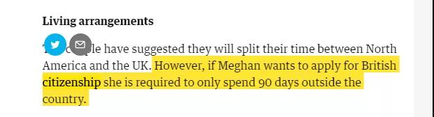 不过英国《卫报》称,梅根如果想获得英国公民身份,每年离境时间不得超过90天。