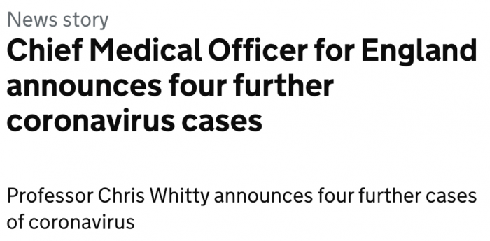 随着疫情的升级,英国政府也随之将新冠病毒预警级别从“低”调整至了“中”。英国卫生部大臣马特·汉考克则于今日宣布,病毒对英国的公众健康造成了“严重并紧迫的威胁”。