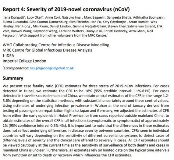 英国帝国理工学院《新型冠状病毒疫情的严重性》评估报告首页