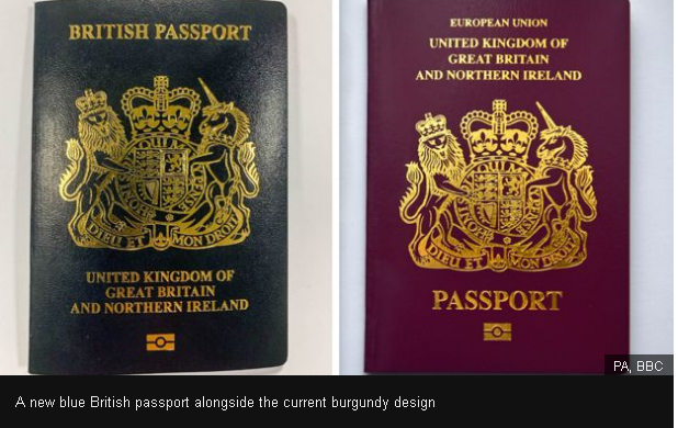 英国政府于本月22日公布了脱欧后的新护照设计,将在3月投入使用。护照的外观为蓝色。在脱欧前,英国人使用的护照为勃艮第红色。蓝色新护照由法国设计、波兰制作,引发了争议。
