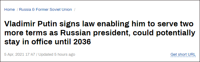 据“今日俄罗斯”(RT)5日报道,俄罗斯总统普京签署了一项法案,该法案允许他在2024年任期结束后,继续竞选总统。当地时间4月5日,俄罗斯政府网站正式对外公布该法案。